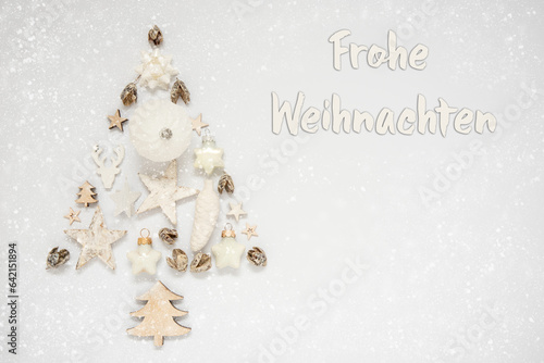 Christmas Tree Out Of Christmas Decoration With Label With Text Frohe Weihnachten