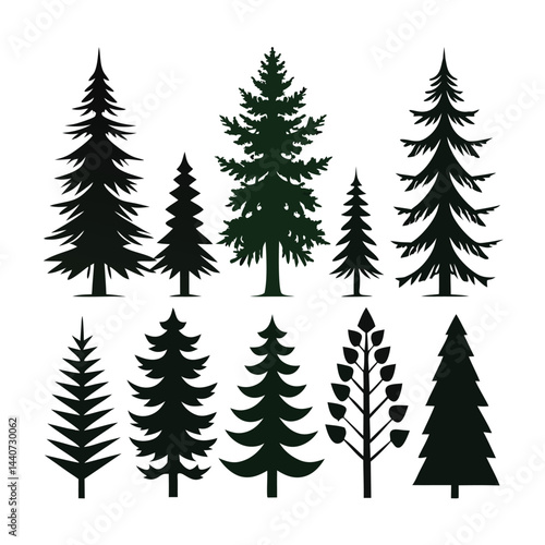 "Christmas Tree Silhouette Vector Collection in Minimalist and Festive Styles for Holiday Design Projects"