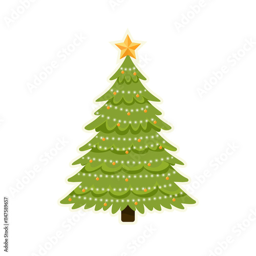 star shape, christmas, tree, sticker, isolated, light, christmas tree, illustration, winter, design, celebration, decoration, december, holiday, season
