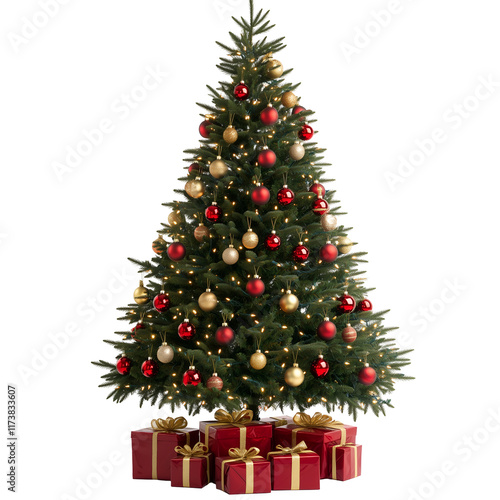 christmas, tree, decoration, holiday, christmas, christmas tree, celebration, gift, star, fir, ball, isolated, green, pine, year, new, present, illustration, season, winter, ornament, new year, vector, box, merry