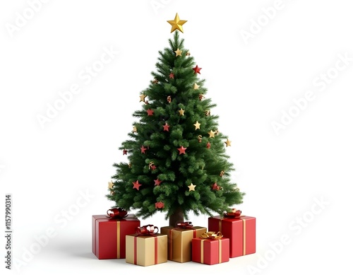 christmas, shaft, gift, decoration, vacation, christmas tree, celebration, present, fir, box, ball, star, winter, new, isolated, year, santa, gold, red, green, season, ornament, new year, ai