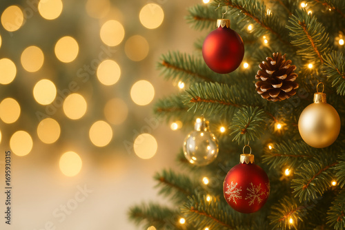 Christmas Tree with Ornaments and Warm Holiday Lights