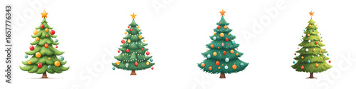 christmas tree, christmas, tree, ornament, decoration, holiday, season, festive, winter, new year, fir, pine, green, star, ball, light, decorated, isolated, white background, illustration, cartoon, cute, traditional, celebration, happy, merry, jolly, spruce, set, collection, 4, style, art, design, graphic, element, template
