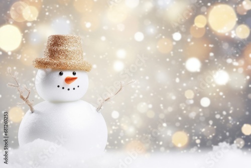 Christmas winter smiling happy snowman frosty snow new year celebration holiday cute decoration greeting december eve face funny white snowball with scarf hat carrot xmas festivity shiny flakes smile