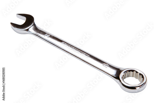 wrench, spanner, tool, chrome, combination, metal, mechanic, repair, maintenance, hardware, instrument, tooling, mains outlet, polished, isolated, transparent, product, catalog, e-business, branding, studio, single, object, bar, industrial, bricolage, construction, workshop