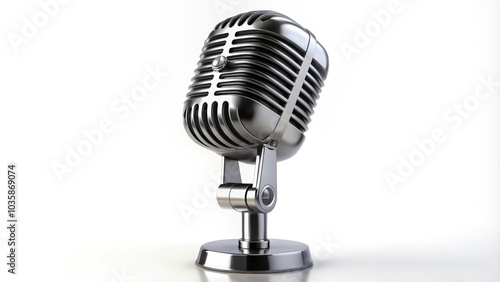 microphone, vintage, retro, audio, sound, music, voice, recording, studio, equipment, technology, communication, broadcast, singer, song, entertainment, classic, old, chrome, metal, shiny, silver, isolated, white, background, object, single, copy, space, close