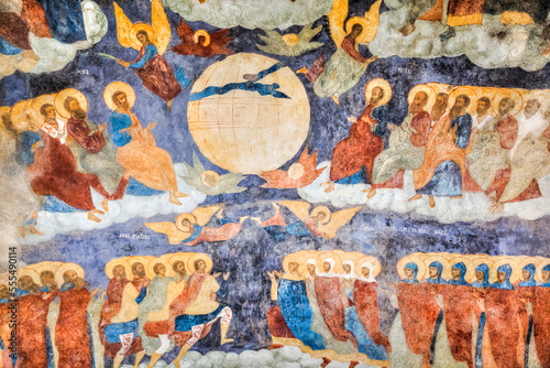 teaching, painted, biblical, fresco, follower, russia, jesus christ, colourful, horizontal, heaven, faith, religious, religion, landmark, inspirational, angel, saviour, jesus christ, disciple, apostle, depiction, messiah, afterlife, russian, belief, historical, church, christianity, artwork, destination, travel, painting, art, wall, color image, unesco, tourist attraction, church