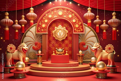 church of the holy sepulchre podiums for product display with oriental style decoration in background for Chinese new year