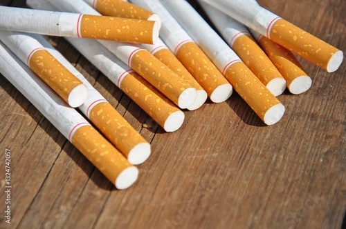 cigarettes on a wooden table. smoking problems