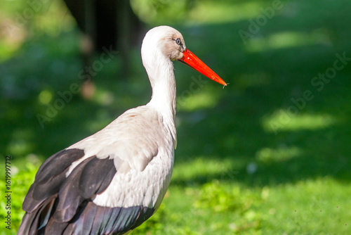 animal, animal, bird, stork, white stork, nature, beak, neck, ornithology, mitt, feather, leaf, white, feather, closeup, profile, ciconia, wild, green, wing, standing