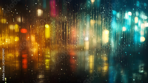 Cinematic rain-soaked cityscape featuring neon reflections urban landscape digital art nighttime atmospheric concept