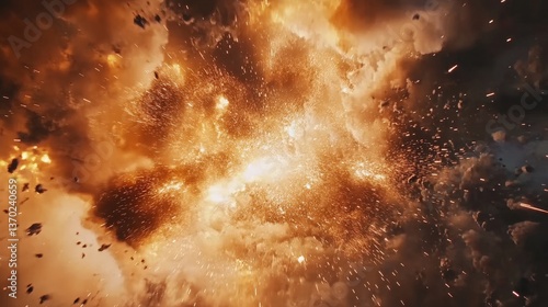 cinematic slow-motion shot of sparks flying from a massive firework explosion