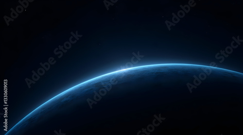 horizon, curve, light, darkness, glow, edge, arc, line, shape, form, sphere, celestial, cosmic, planetary, surface, atmosphere, space, cosmos, mystery, universe, astronomy, exploration, discovery, science, nature, environment, future, timeless, immensity, forever, serenity, awe, wonder, calm, peace, calmness, solitude, isolation, intrigue, drama, power, blue, black, midnight, electric, vibrant, bright