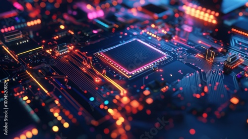 circuit, board, technology, electronic, digital, hardware, computer, microchip, processor, motherboard, wire, cable, electricity, power, innovation, futuristic, glowing, neon, led, abstract, design, art, background, texture, pattern, graphic, style, bright, colourful, dark, blue, red, orange, pink, light, future, science, engineering, datum, network, signal, connectivity, communication, information, artificial, intelligence, machine, chipset