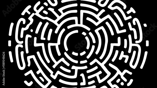 labyrinth, circular, abstract, design, black, white, pattern, graphic, art, illustration, concentric, circle, line, pathway, labyrinth, puzzle, complex, intricate, geometry, geometric, shape, form, structure, visual, optical, illusion, style, modern, contemporary, minimalist, simple, bold, contrast, texture, background, wallpaper, decoration, element, motif, symbol, winding, path, challenge, solution