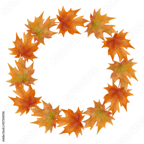Circular frame made of yellow maple leaves forming a bright autumn wreath. Watercolor style adds a soft, natural texture and a warm seasonal atmosphere to the illustration.