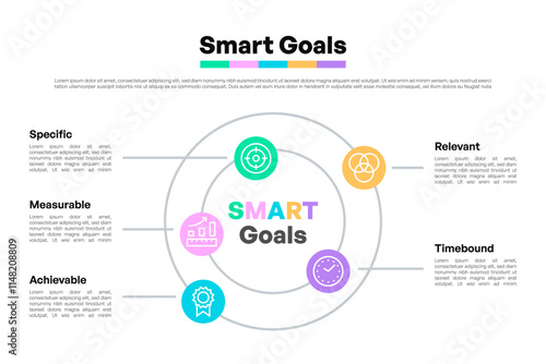 smart, goal, circular, diagram, central, element, orbit, icon, specific, measurable, salient, planning, strategy, workflow, business, productivity, clarity, framework, system, success, organisation, progress, management, education, teamwork, leadership, development, efficiency, improvement, creativity, visualisation, timeline, performance, objective, structure, process, action, design, result, step, growth, cycle, concept, infographic