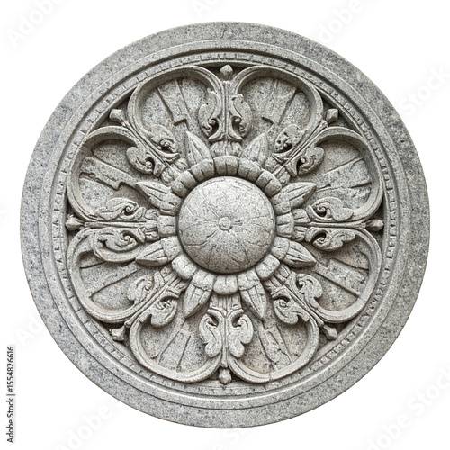 stone, relief, circular, intricate, floral, design, architecture, decorative, craftsmanship, symmetric, pattern, elegant, carving, ornament, historic, antique, detail, sculpture, artistic, tradition, vintage, ornate, motif, tile, surface, element, decoration, structure, masonry, wall, sculptural