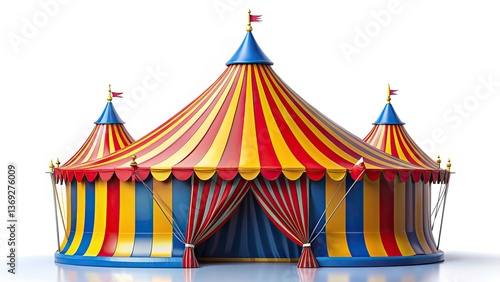 Circus Tent Isolated on White Background - Vibrant, Colorful Big Top for Fun Events, Festivities, and Celebrations - Perfect for Illustrations and Creative Projects