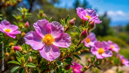 Cistus Creticus: Wild Rose of Crete - Stunning Mediterranean Flora Stock Photo