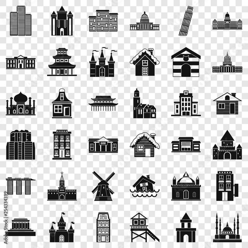 City building icons set. Simple style of 36 city building vector icons for web for any design