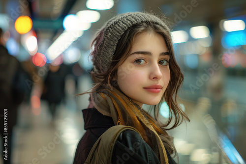 woman, evening, beanie, portrait, city, urban, thoughtful, beautiful, street, fashion, casual attire, young, trendy, stylish, bokeh, background, light, night, modern, chic, outdoors, downtown, attractive, lady, lifestyle, fashionable, girl, elegant, soft, confident, sharpened, calm, serene, jacket, coiffure, transport, commute, travel, young adult, female, hipster, cool, subway, station, city landscape, people, blurry, light, looking