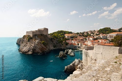 ancient, architecture, blue, brick, brick, building, citadel, city, city landscape, cloud, construction, day, destination, exterior, famous, fortress, historic, historical, history, house, life, old, place, roof, sky, stone, street, tour tourism, tower, town, travel, urban, view, wall, dubrovnik, croatia