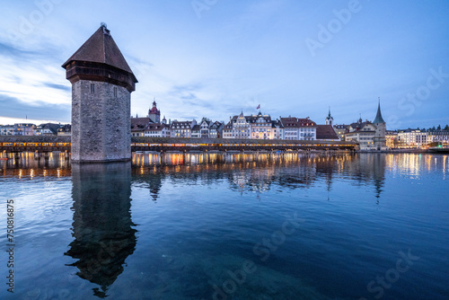City of Lucerne in Switzerland with famous Kapellbrücke