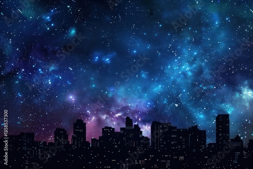 residential area, building exterior, built structure, architecture, illustration, illuminated, outer space, silhouette, skyscraper, starry sky, background, astronomy, city life, city landscape, landscape, milky way, building, darkness, forever, midnight, outdoors, universe, glowing, science, skyline, galaxy, nature, nebula, planet, purple, night, space, urban, blue, city, moon, star, town, sky