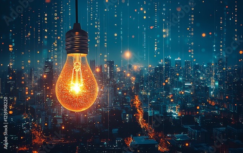 city, skyline, night, light bulb, concept, overlay, flow, binary, code, light, fusion, idea, aglow, symbolize, silhouette, artistry, network, connection, information, development, ambience, inspiration, innovation, virtual, projection, vibrant, aesthetic, freedom, architecture, modern, metropolis, reality, picturesque, artistic, landscape, synergy, movement, environment, design, transformation