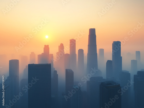 environmental, impact, carbon, resource, city, skyline, sunrise, misty, atmosphere, stunning, view, mist, build, architecture, yellow, vista, quiet, travel, daylight, nature, horizon, ambience, contrast, colours, stillness, scenery, dreamscape, structure, evening, landmark, sunlight, tower, scenic, orange, peaceful, distance, gradient, background, viewpoint, empty, morning