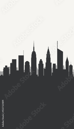 City skyline silhouette in minimalist style with neutral background