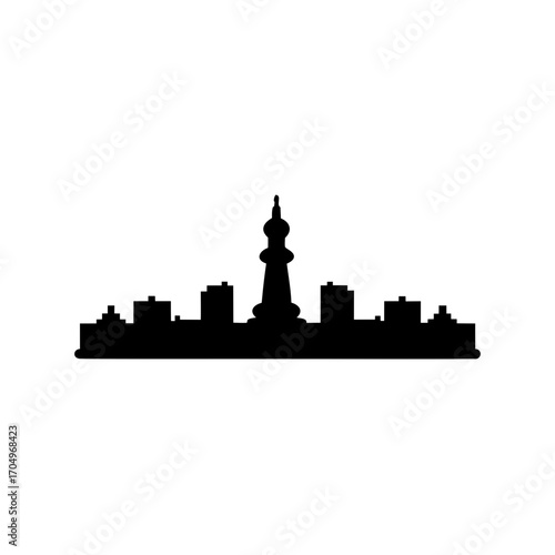 City skyline with a unique tower silhouette against a white background