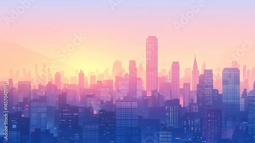 City skyline with elegant skyscrapers glass exteriors minimalist urban design glowing under daylight seamless wallpaper aesthetic.