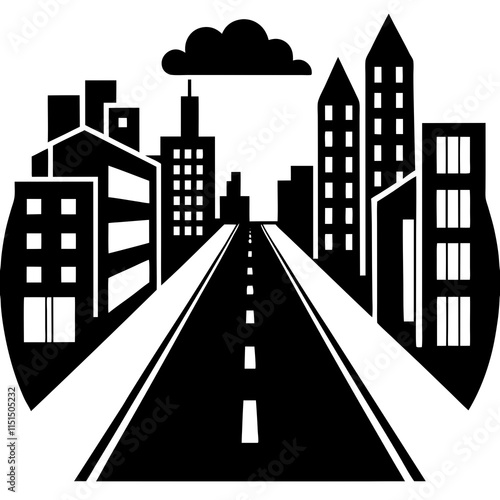 city, street, silhouette, flat, simple, vector, urban, black, white, isolated, icon, design, traffic, road, transportation, city landscape, movement, architecture, building, monochrome, modern, vehicle, structure, transport, minimal