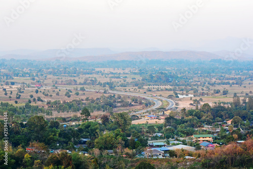 City view and village road, bird eye view