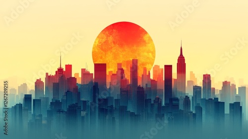 city, skyline, urban, metropolis, building, architecture, skyscraper, city landscape, sunset, sunrise, dawn, dusk, modern, contemporary, design, illustration, graphic, art, artwork, background, wallpaper, texture, pattern, image, photo, photo, visual, aesthetic, minimal, simple, clean, elegant, stylish, trendy, vibrant, colours, red, orange, yellow, blue, grey, haze, fog, mist, atmosphere, mood, feeling