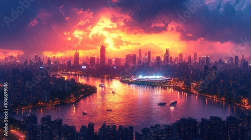 city, city landscape, building, river, water, sky, sunset, cloud, rain, night, light, urban, architecture, reflections, horizon, twilight, dusk, evening, storm, landscape, metropolis, downtown, aerial, view, photo, illumination, urbanisation, skyscraper, panorama, natural, light, gold, hours, life, street, modern