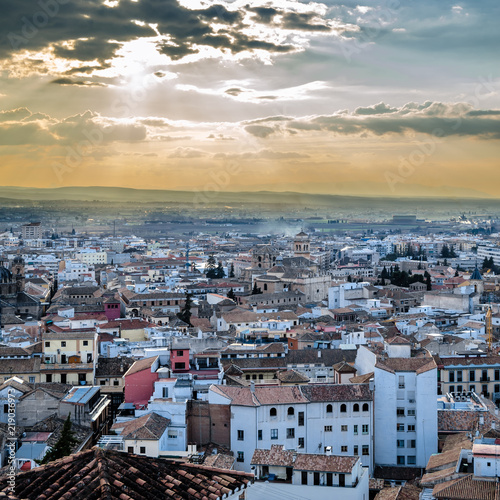 Cityscape at sunset of Granada, Spain