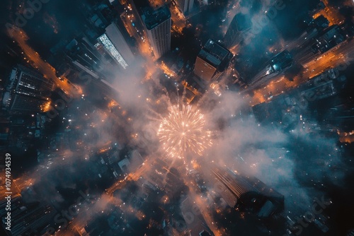 fireworks, city landscape, night, aerial, urban, city, explosion, light, colours, celebration, spectacle, vibrant, dazzling, illuminated, landscape, sky, smoke, night sky, city landscape, metropolis, fireworks display, pyrotechnic, glow, bright, dramatic, perspective, architecture, building, street light, abstract, art, design, graphic, texture, background, wallpaper, moody, atmospheric, dark