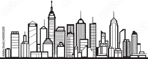 Cityscape Outline Artwork Line Drawing Logo Minimalist Urban Scene Building Emblem
