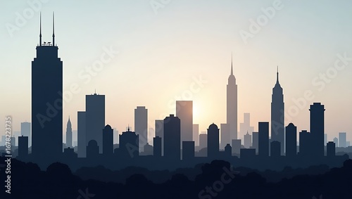 Cityscape Silhouette Skyline with Skyscrapers at Sunset