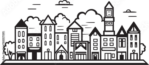 Cityscape Sketches: Vector Logo Design of Minimalist Townscape Townscape Treasures: Simple Line Drawing Logo