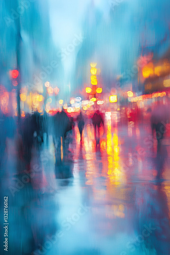 city landscape, twilight, neon, reflections, wet, pavement, urban, night, glow, vibrant, illuminated, futuristic, dreamy, abstract, surreal, atmospheric, street, light, modern, colourful, moody, metropolis, rain, evening, soft, aesthetic, artistic, cinematic, nightlife