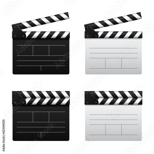 Clapper board on white background. Film movie clapper board. Vector illustration.