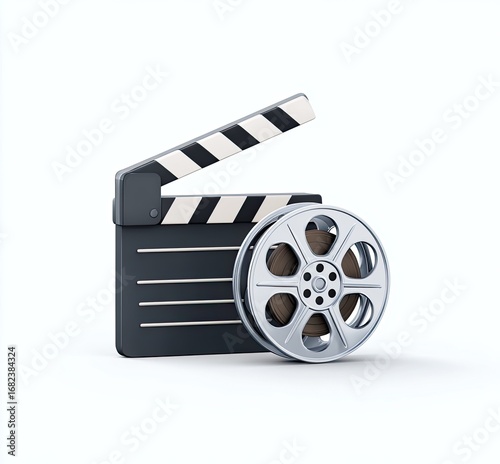 film, motion picture, cinema, video, clapper-board, reel, production, camera, sound, action, still, icon, graphic, digital, design, black, white, silver, three-dimensional, animation, illustration, media, entertainment, story, art, motion, clip, shooting, industry, director, photo, lighting, editing, visual, effect, set, drama, comedy, thriller, documentary, historical