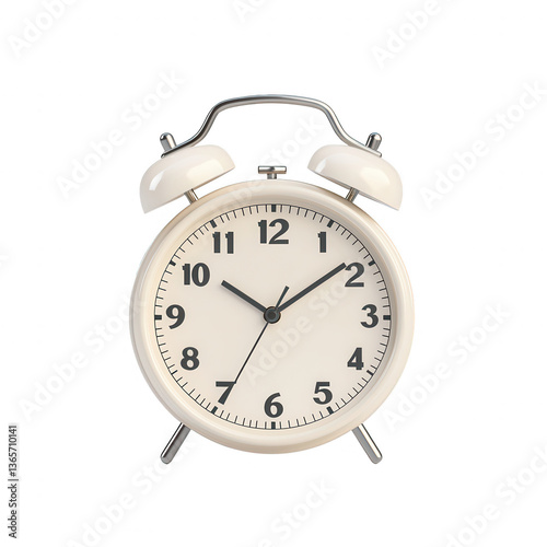 Classic alarm clock with white face and black numbers, symbolizing time management and punctuality, ideal for home or office settings. Beautiful vintage style.