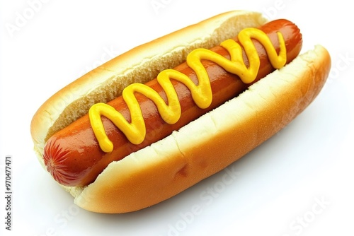 Classic American Hot Dog with Mustard and Ketchup, served on a White Background