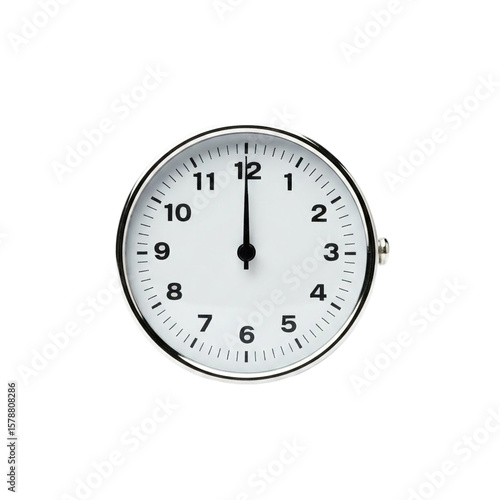 Classic analog clock face showing twelve o clock isolated on transparent background