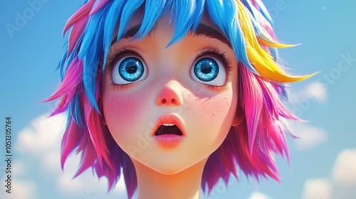 Classic anime 3D cartoon character, exaggerated expressions, colorful hair and vibrant outfits, detailed face, engaging style